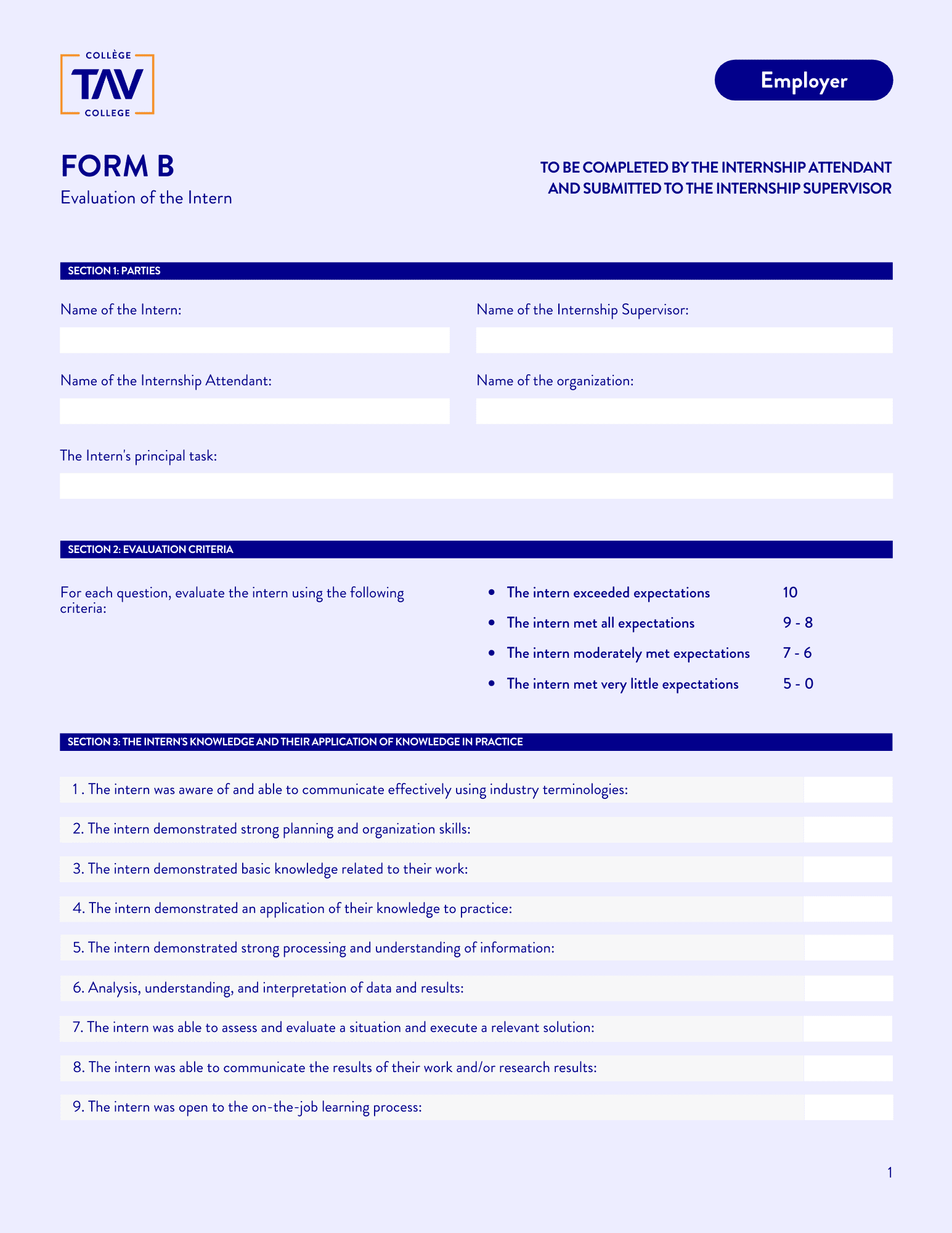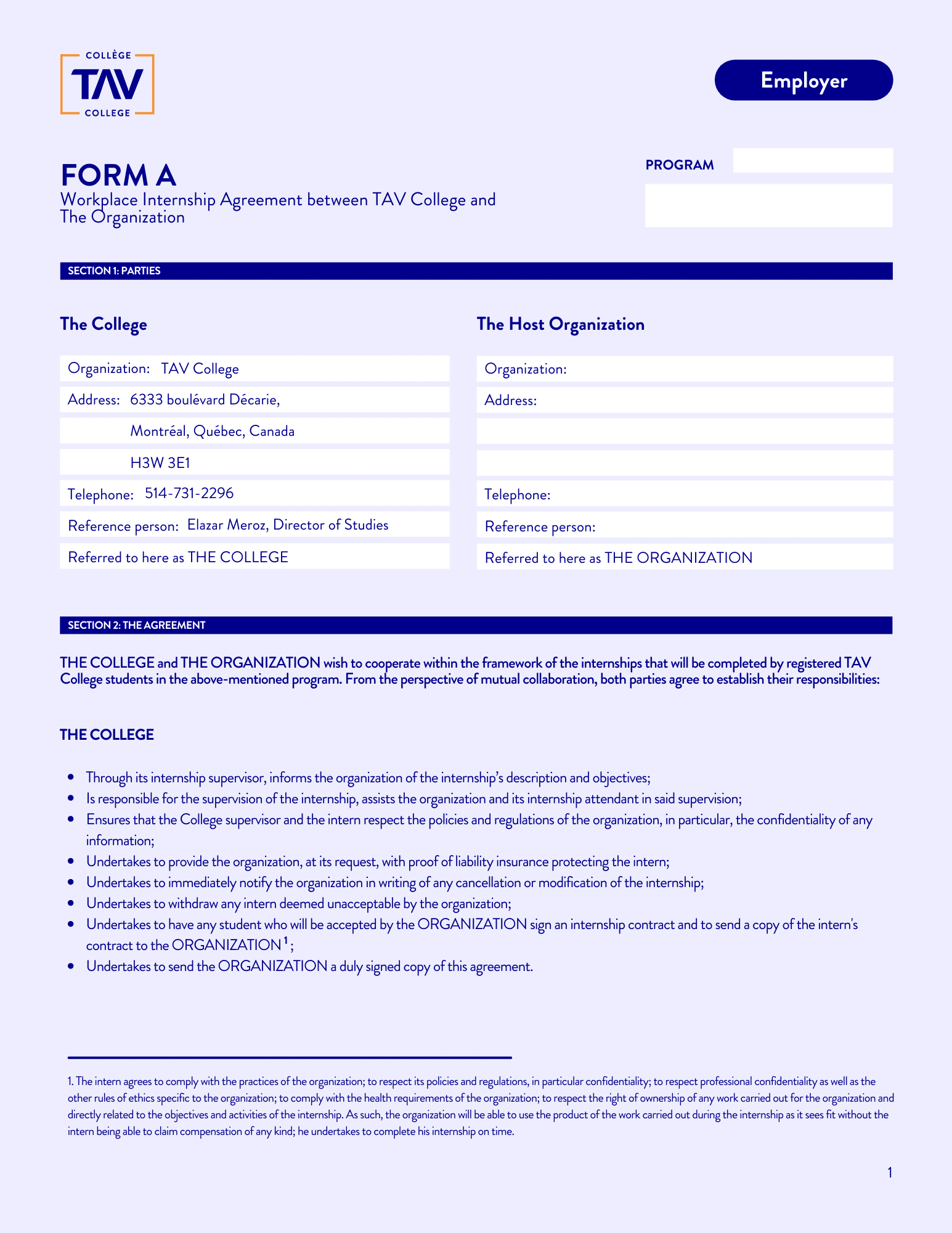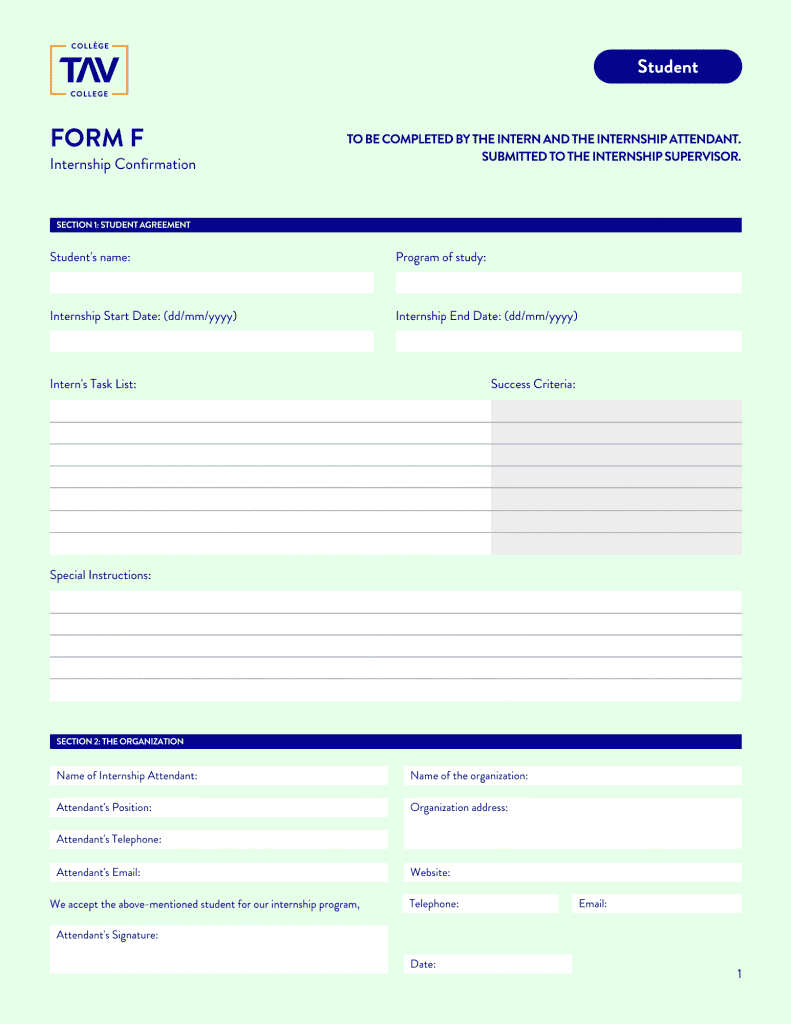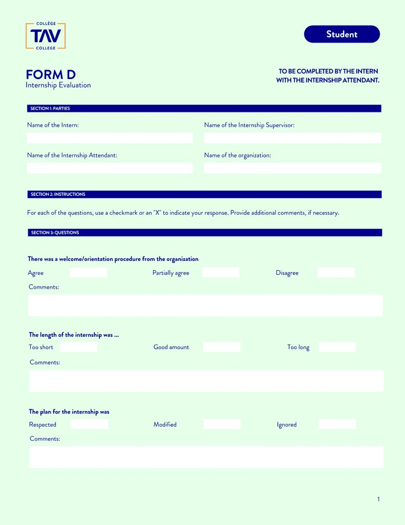 Below you will find TAV College’s general internship documentation for all AEC programs. These forms will be required to be filled out and submitted to the Internship Supervisor throughout an internship. Click on the form to start the download.